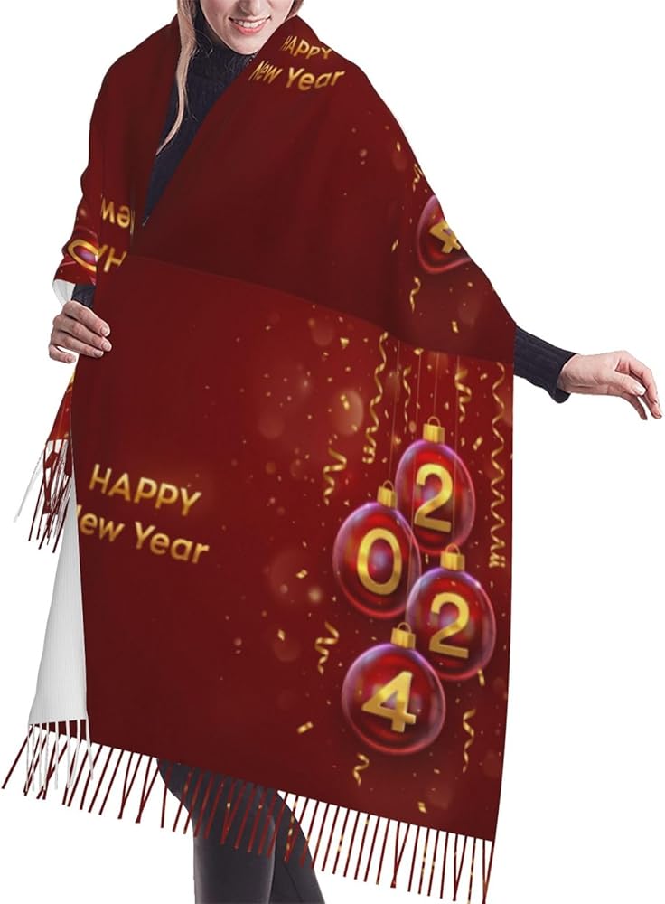Source : stock.adobe.comCOALHO Happy New Year 2024 Tassel Scarf Shawl Warm Blanketl Large